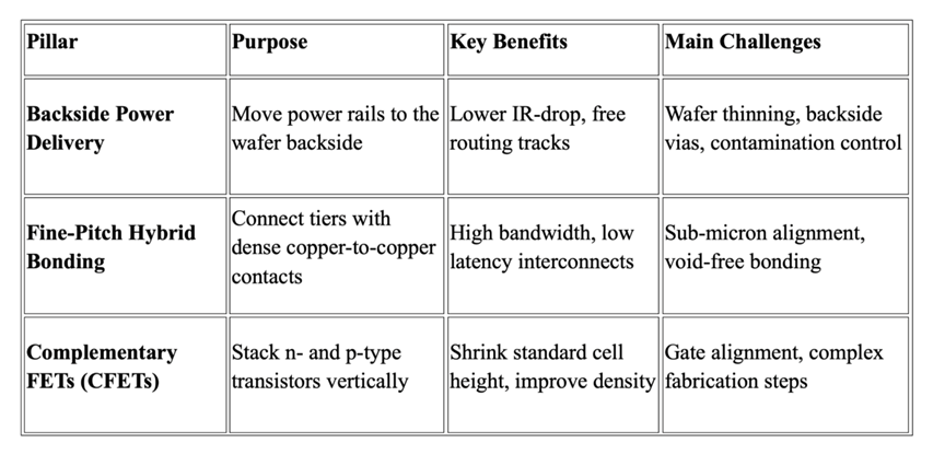 CMOS 2.0 能否成為下一個(gè)標(biāo)準(zhǔn)平臺(tái),還是仍停留在實(shí)驗(yàn)階段,取決于其面臨的最大挑戰(zhàn)能否迅速得到解決。原則上,晶圓級(jí)堆疊、背面功率和 CFET 集成的物理原理是合理的。但在實(shí)踐中,技術(shù)、經(jīng)濟(jì)和物流方面的里程碑仍需不斷完善。